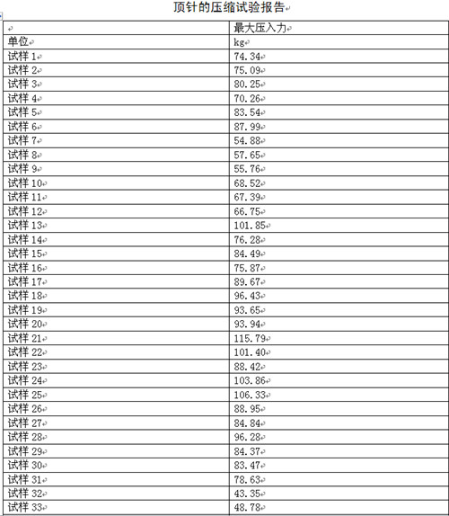 試驗(yàn)報(bào)告:金屬頂針的試驗(yàn)機(jī)壓縮試驗(yàn)