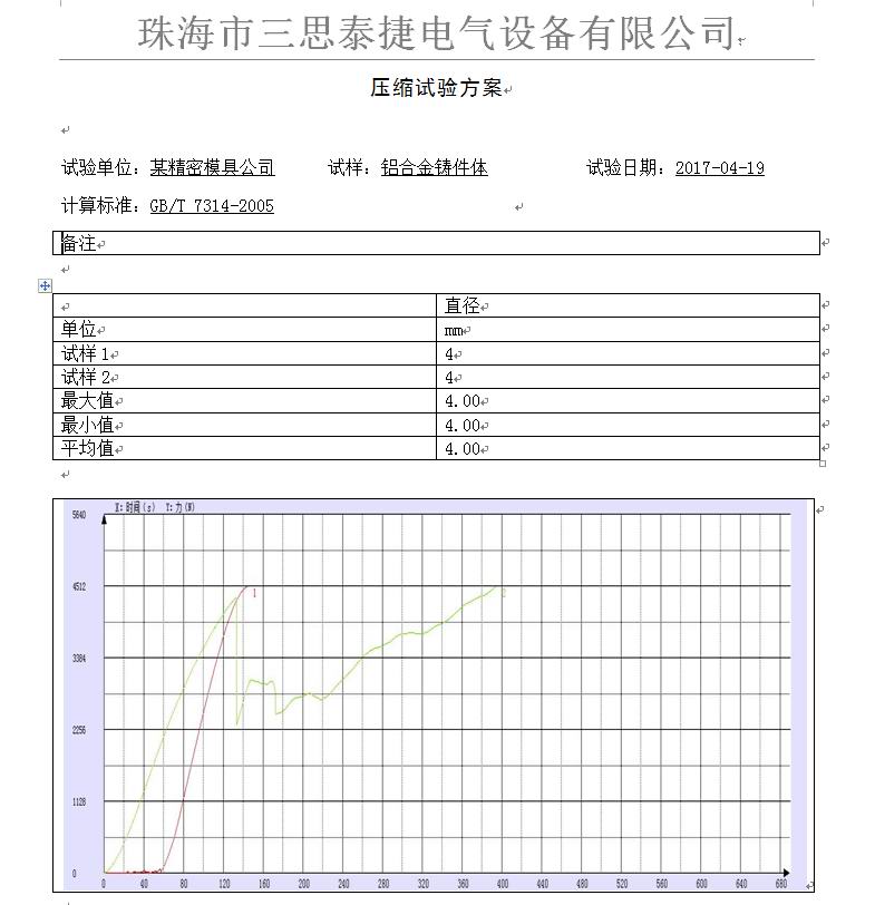 某精密模具公司的鋁合金鑄件試驗(yàn)機(jī)壓縮GB/T 7314-2005